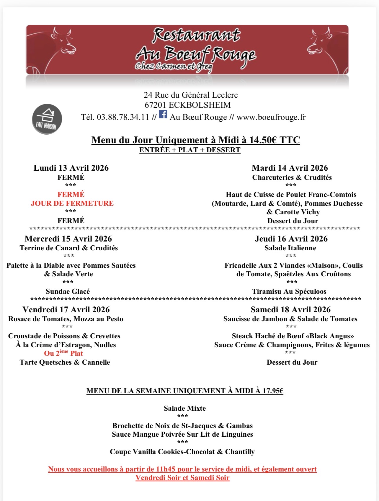 LUNDI 13 Avril 2026