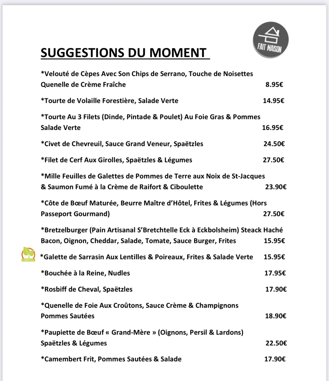 | Le Foie Gras de Canard « Maison », Gelée, Chutney de Figues, Toasts | 16.50€ | |